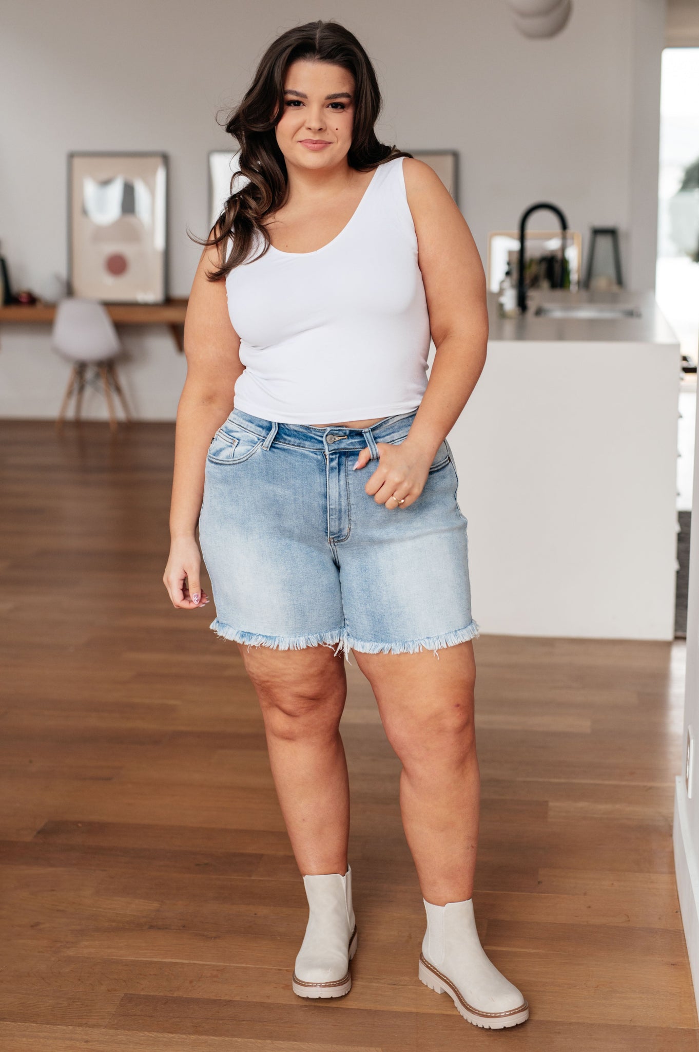 Take on the day in style with Jenny High Rise Cutoff Dad Shorts from Judy Blue. These trendy shorts feature a high rise waist for a flattering fit and a light wash for a cool, casual look. The cutoff raw hem adds an edgy touch, perfect for channeling your inner dad style.