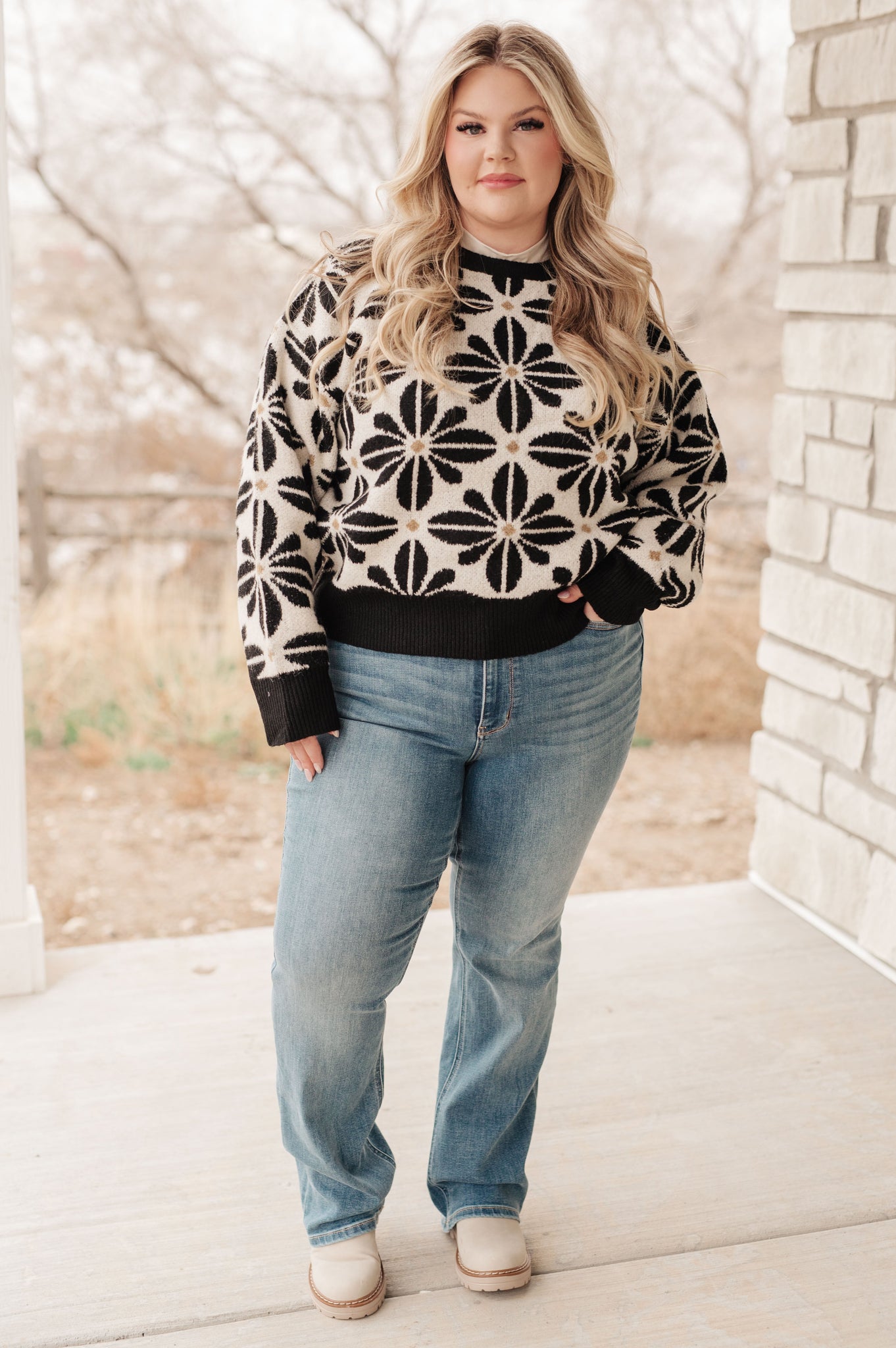 This Mid Mod Floral Sweater is as cozy as it is chic! Crafted from a sweater knit with contrasting trim, this piece will keep you snug and stylish all winter long. It’s just the thing to make your OOTD stand out, with its large scale floral pattern and relaxed fit. Get your hands on it before it's gone!