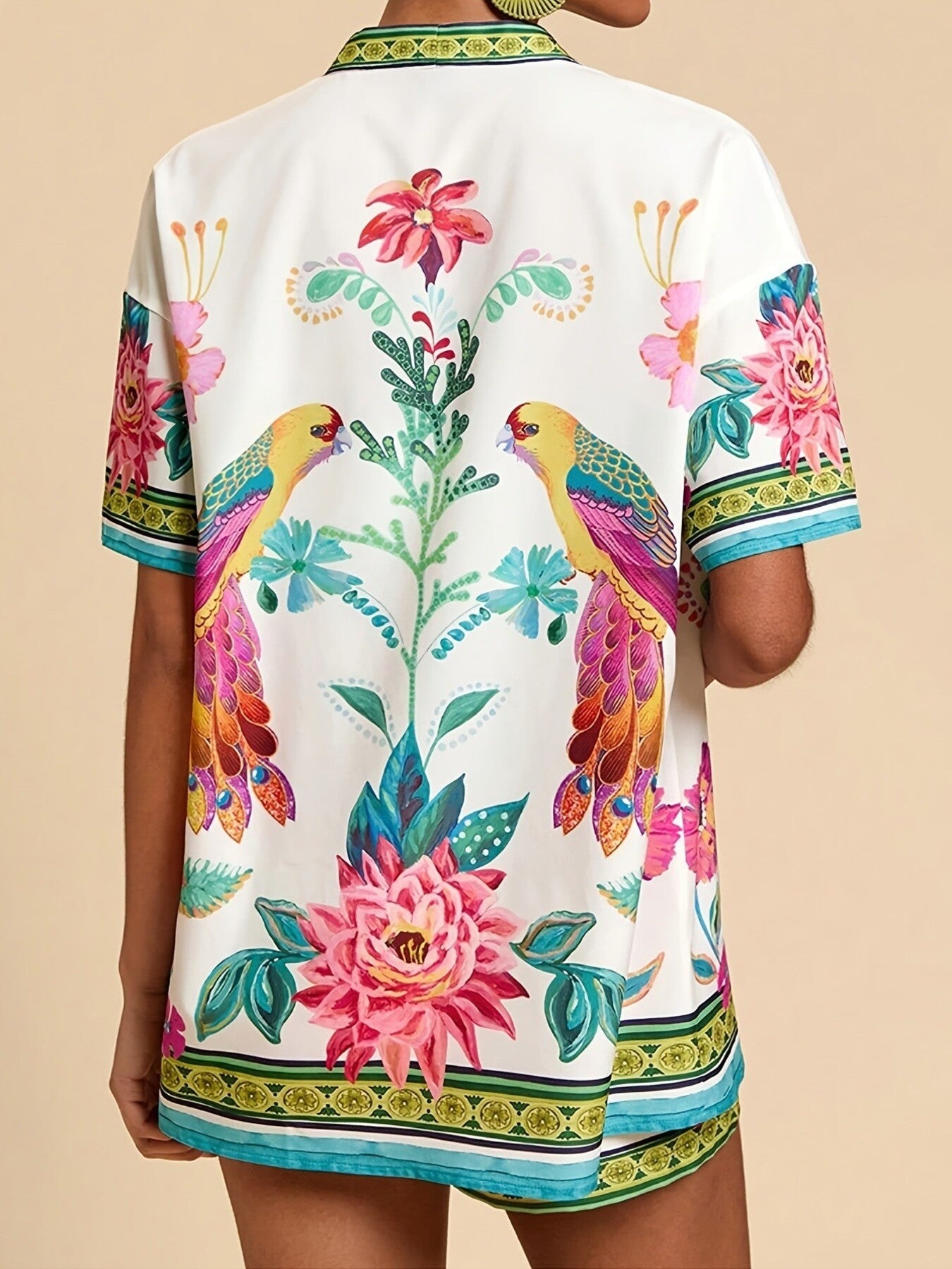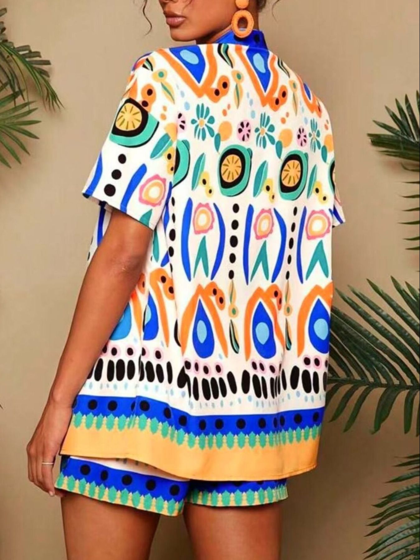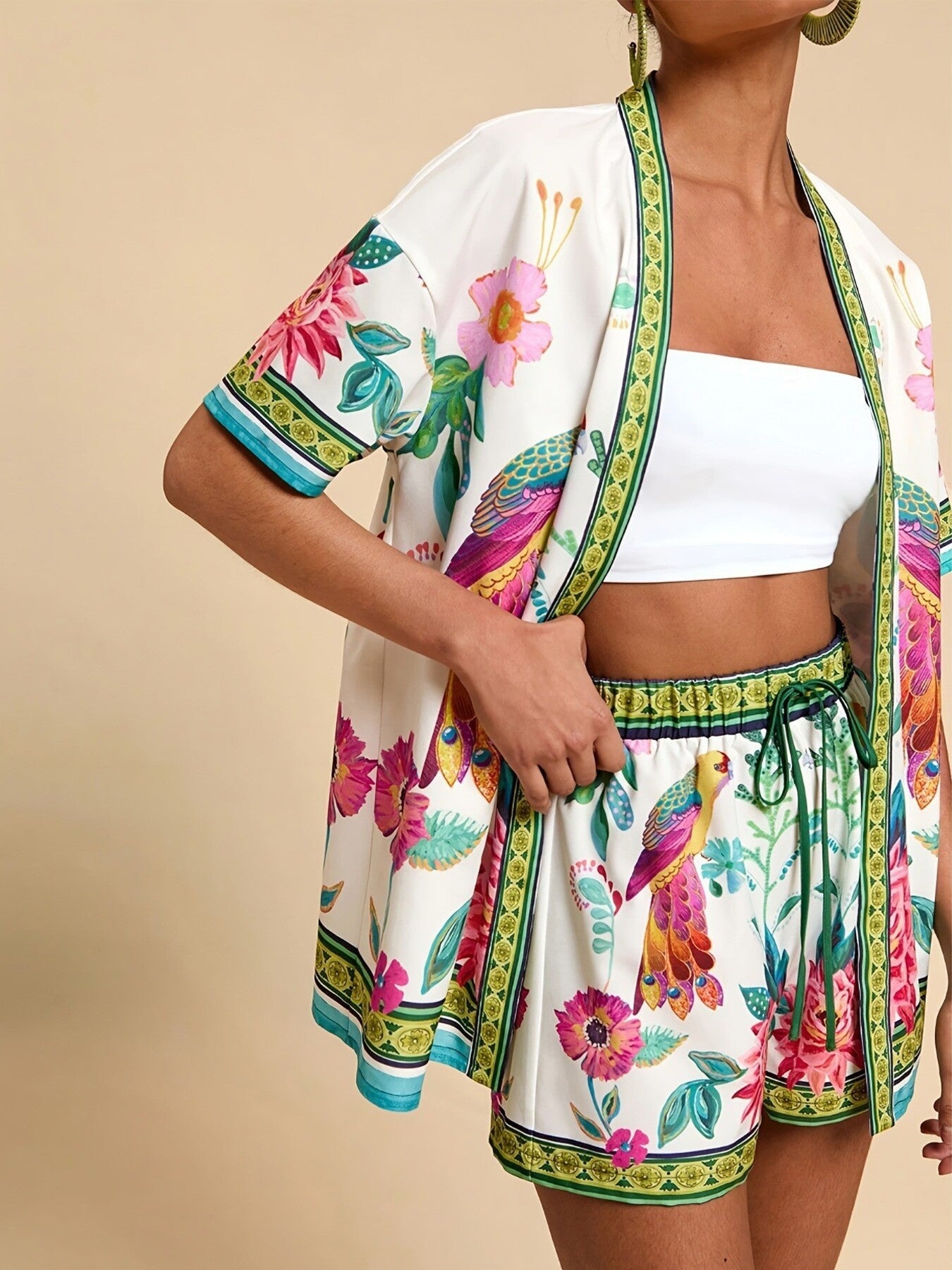 Printed Open Front Cardigan and Shorts Set