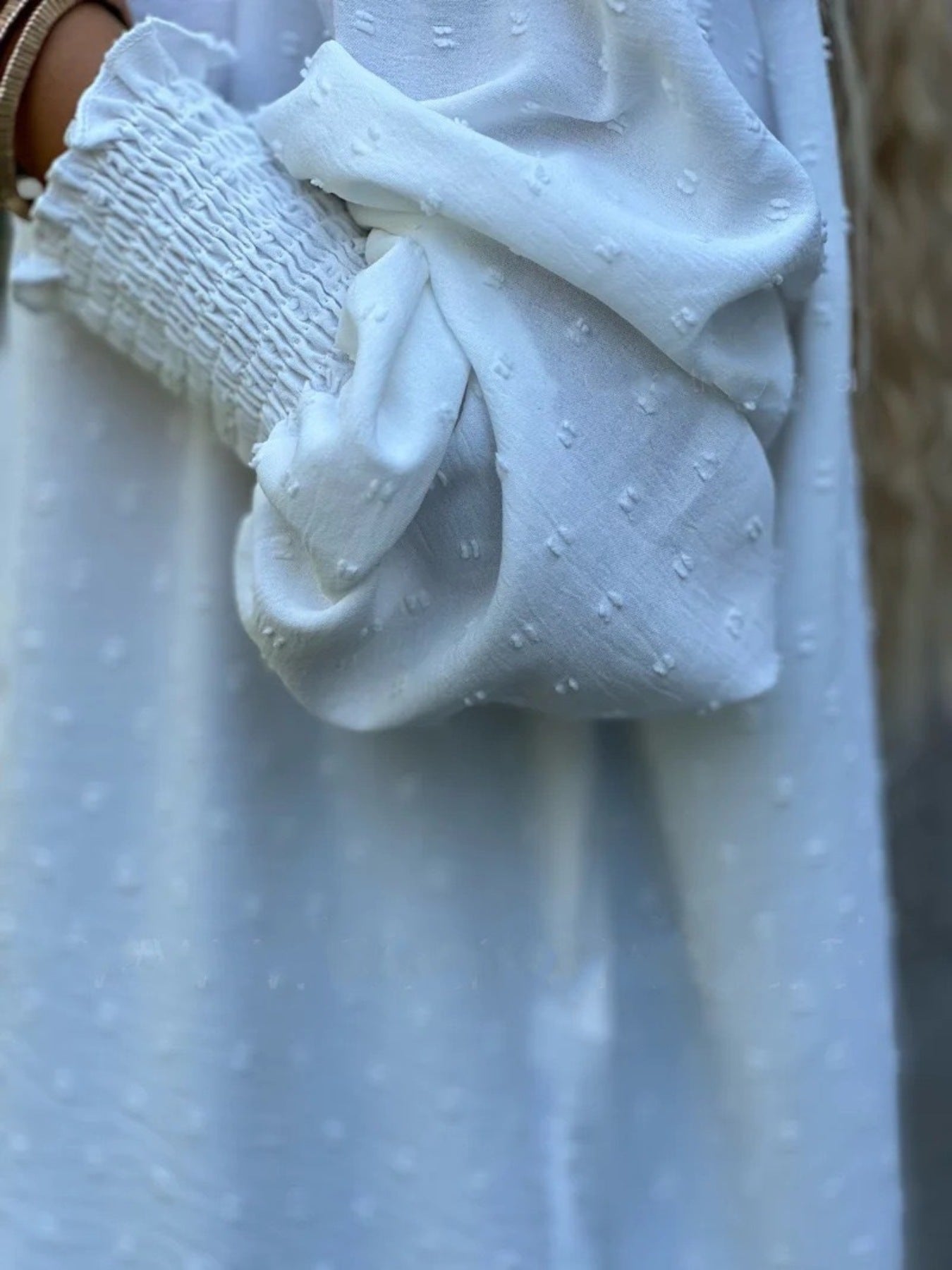 - Features:Buttoned,Smocked,Swiss Dot