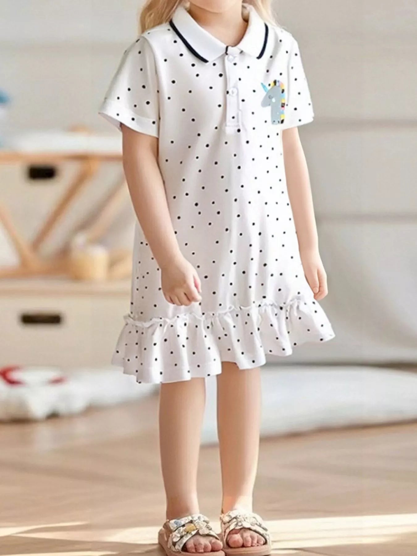 Children's Polka Dot Ruffle Hem Polo Dress