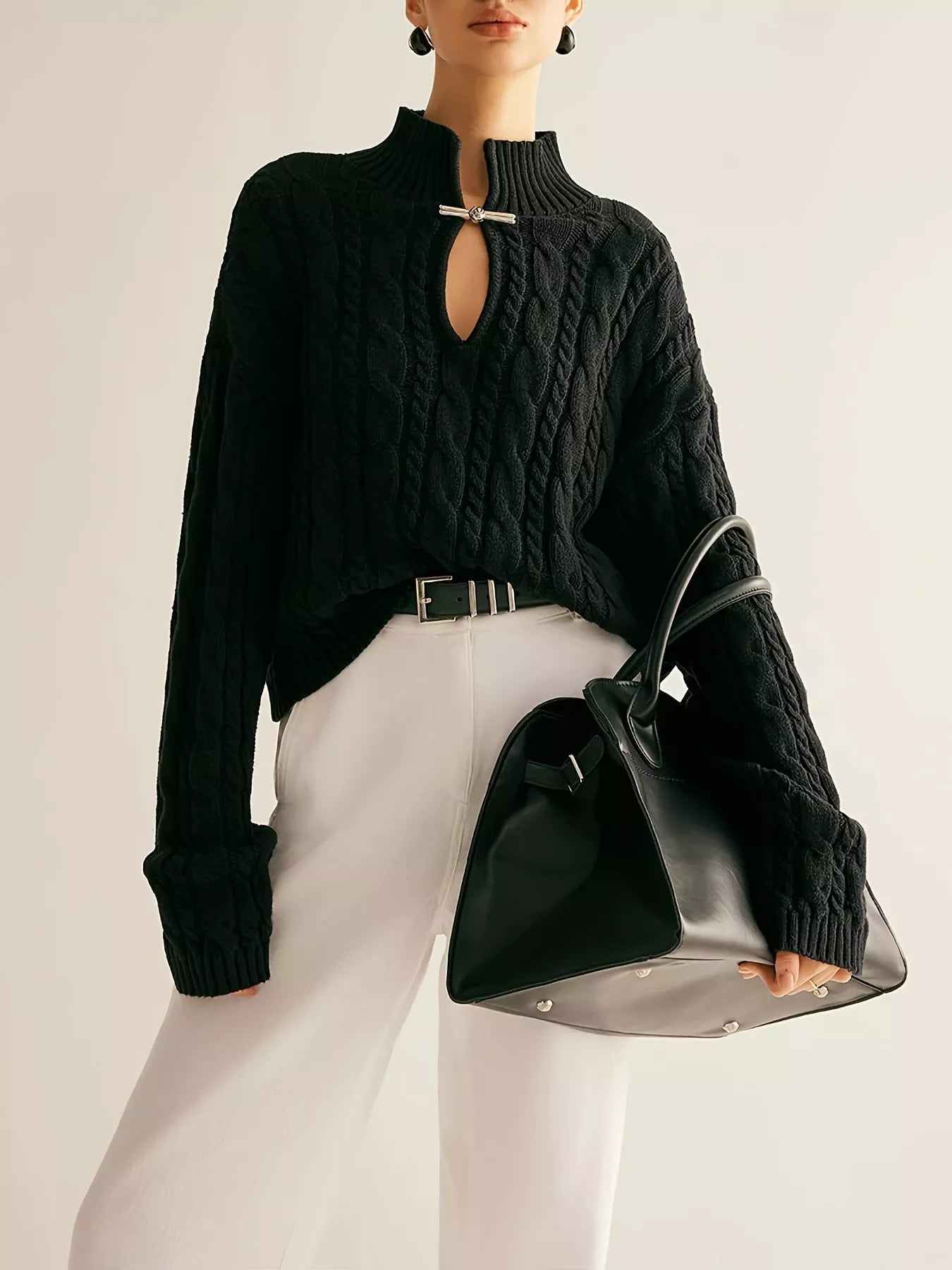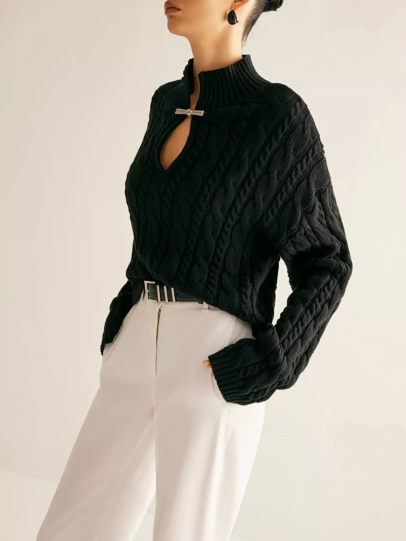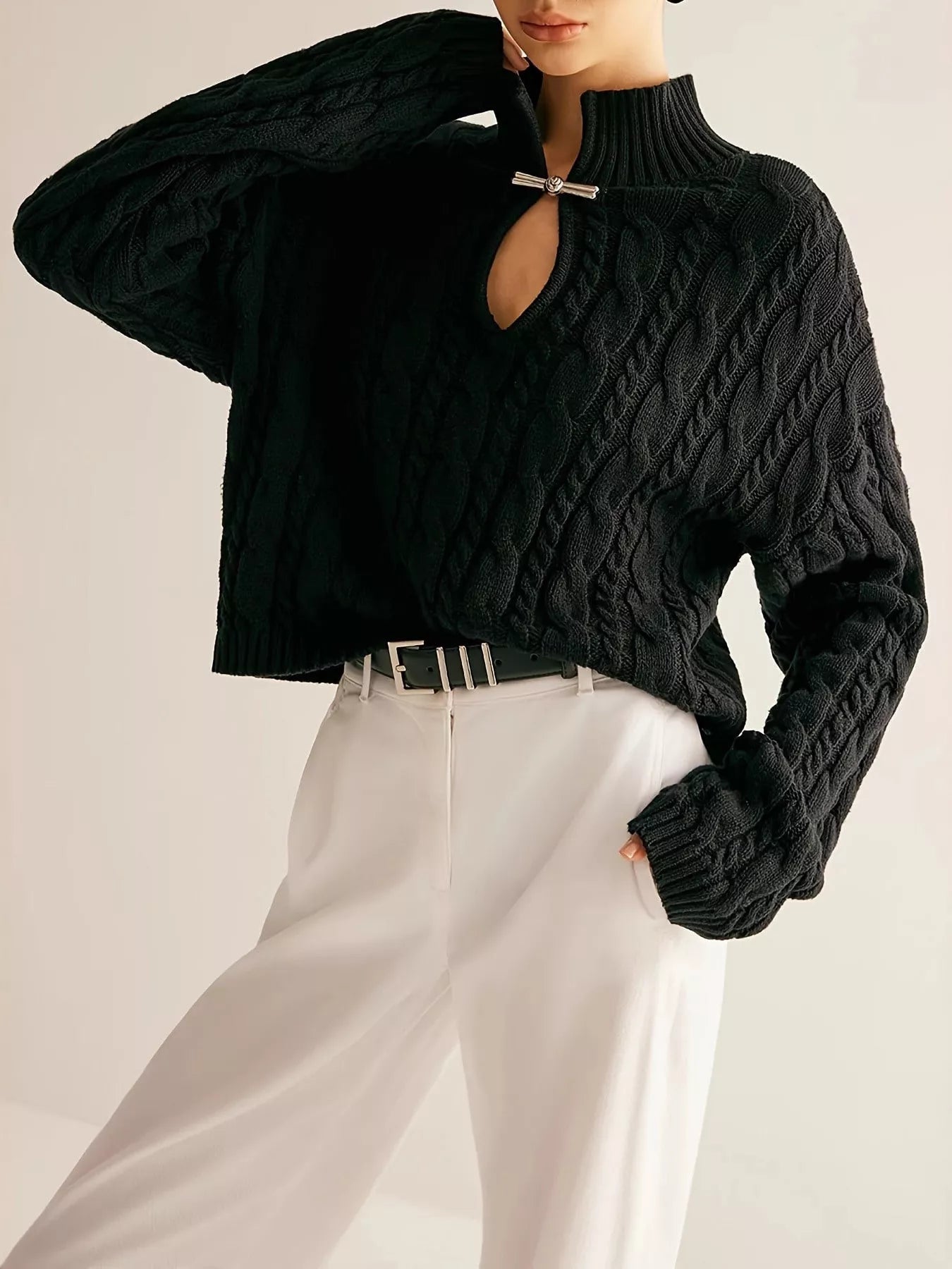 Keyhole Cable-Knit Sweater
