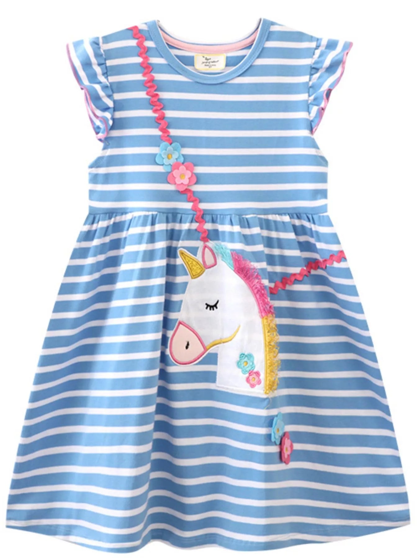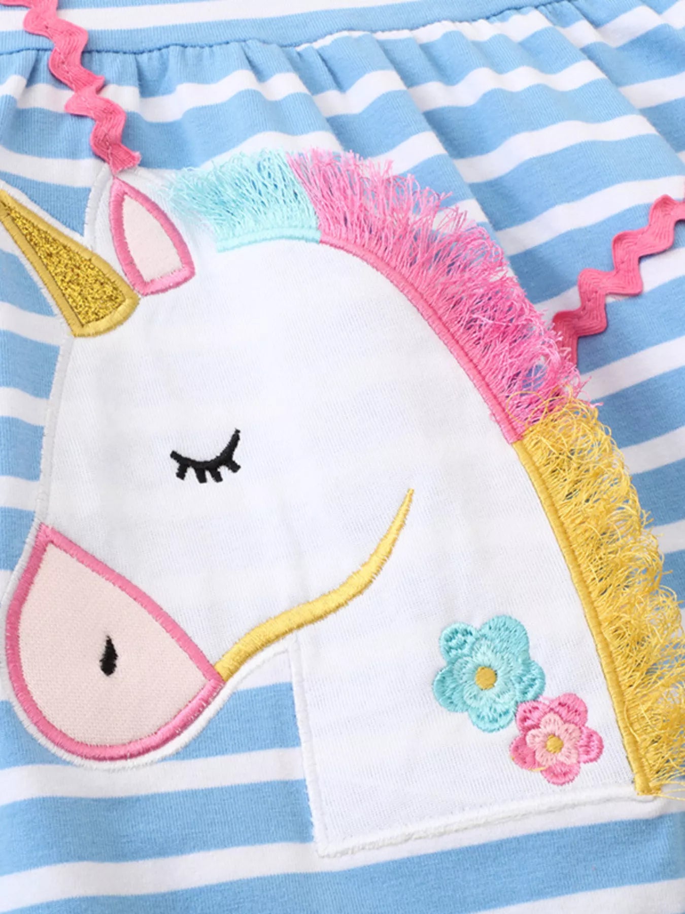 Children's Striped Unicorn Ruffle Sleeve Dress