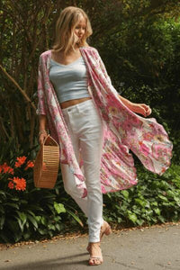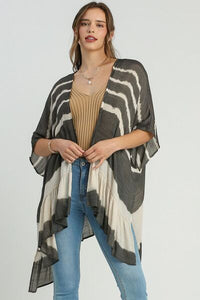 Umgee Embroidery Open Front Kimono with Pleated Shoulder Detail