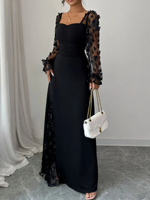 Glittering Surplice Long Sleeve Slit Maxi Dress