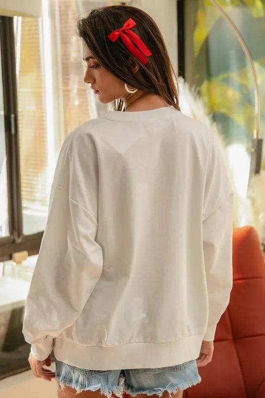 This fashion baseball-themed sweatshirt features a playful 'STRIKE OUT' graphic design with baseball stitching details. Made from a soft and comfortable cotton blend material, it offers both style and comfort. The classic crewneck design with ribbed trim provides a traditional sporty look. The relaxed fit and long sleeves make it perfect for casual wear or showing team spirit. The white base color creates a clean, versatile canvas for the statement graphic. Ideal for baseball season, casual outings, or loungewear.