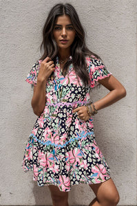 Delilah Bohemian Floral Print Long Sleeve Mini Dress