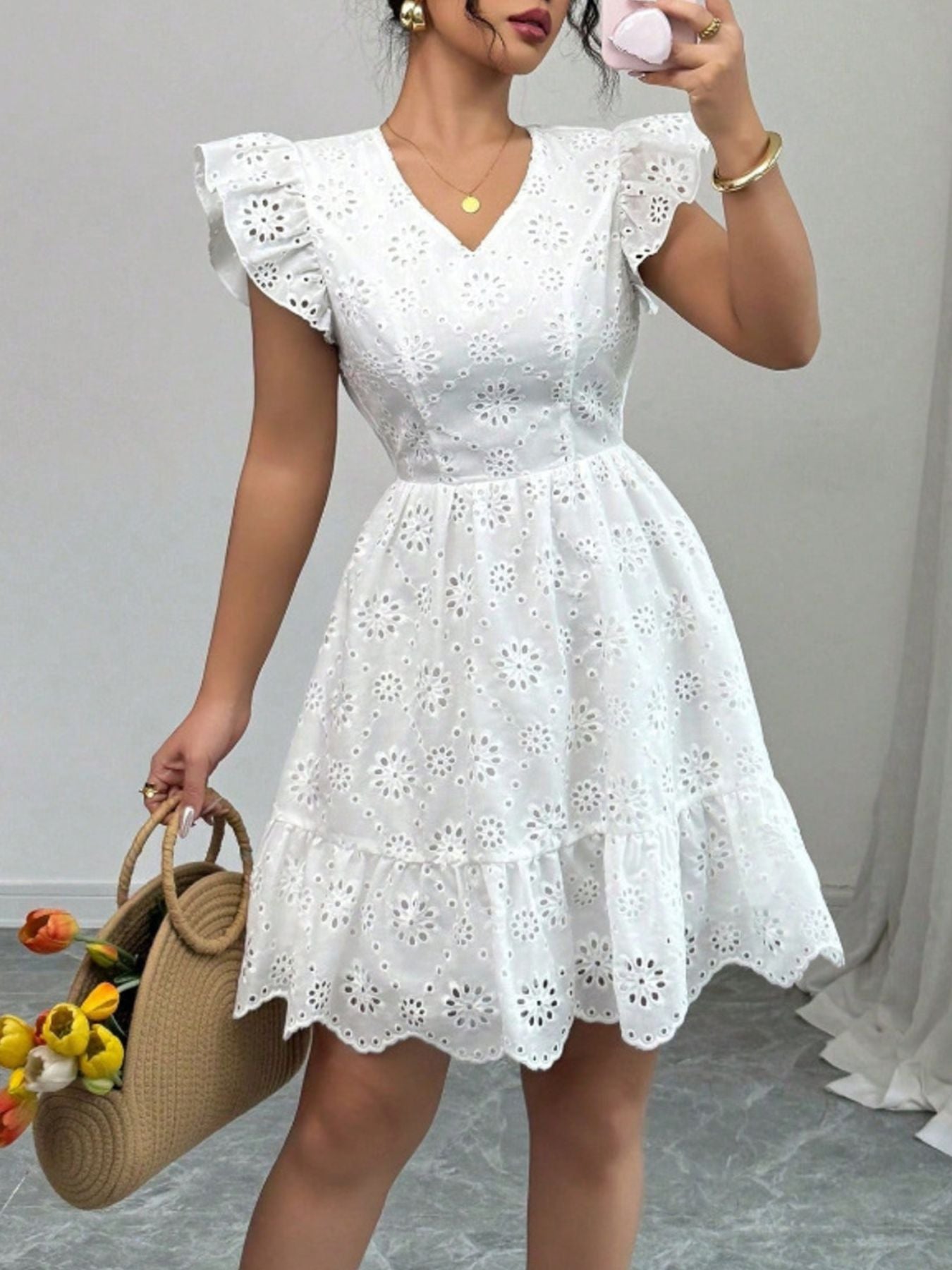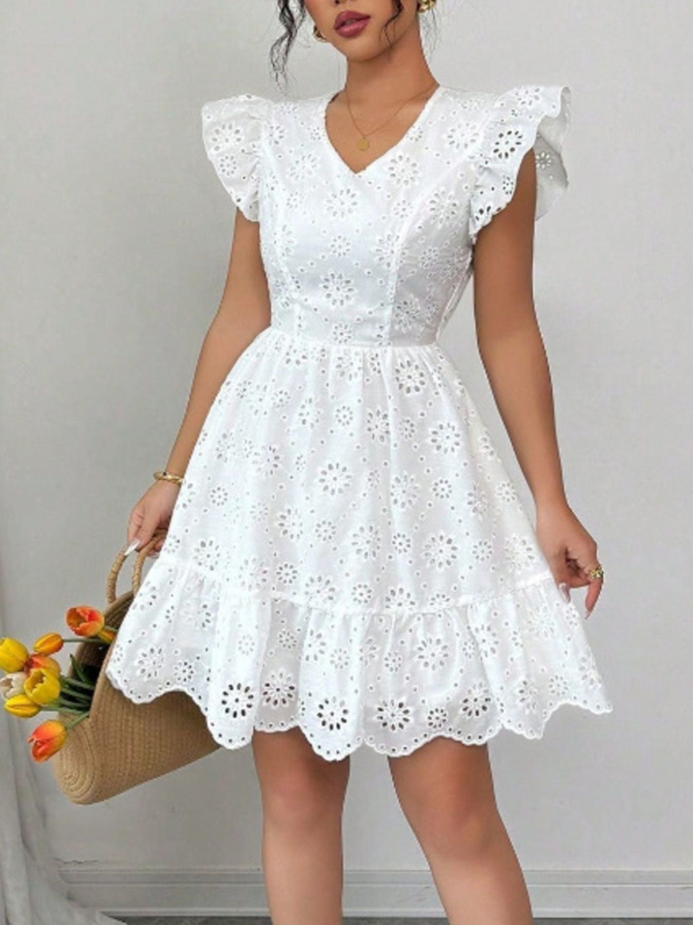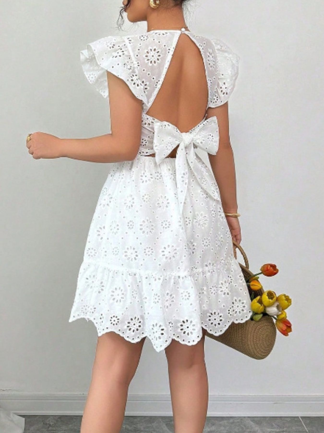 - Features:Backless,Tied,Ruffled