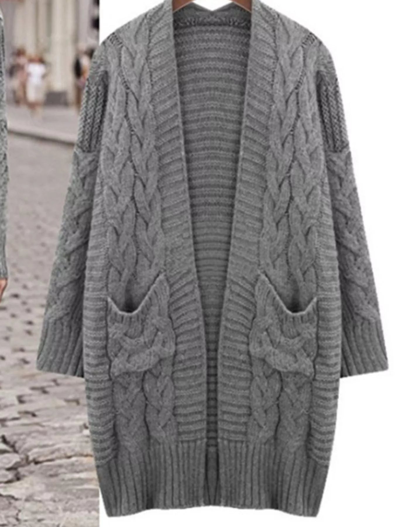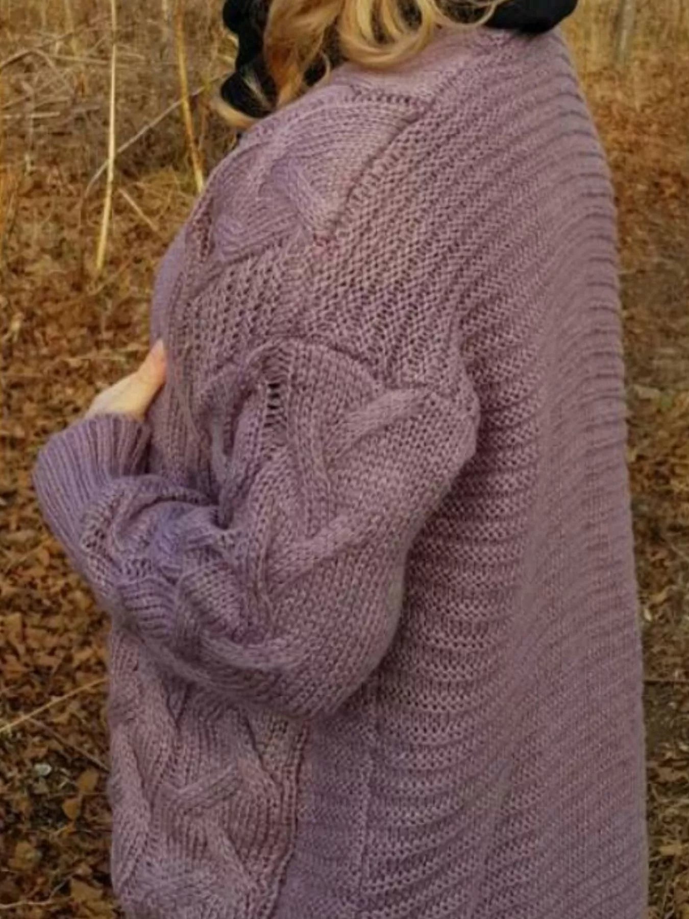 Full Size Chunky Knit Open Front Cardigan Plus Size