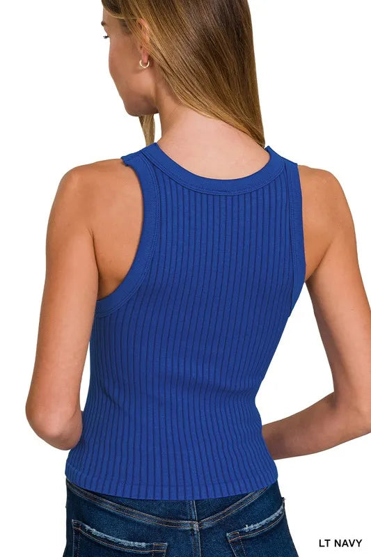 The Seamless Ribbed Crop Tank is a versatile and trendy wardrobe staple that offers both comfort and style. Made from a seamless and ribbed fabric, this crop tank provides a flattering and stretchy fit that conforms to your body shape. The ribbed texture adds an interesting detail to the design, while the crop style offers a modern and youthful look. This tank top is perfect for layering or wearing on its own, and the crop length pairs well with high-waisted bottoms such as jeans, shorts, or skirts. Whether you're heading to the gym, running errands, or going out with friends, the Seamless Ribbed Crop Tank is a versatile and chic option that can be dressed up or down for various occasions.