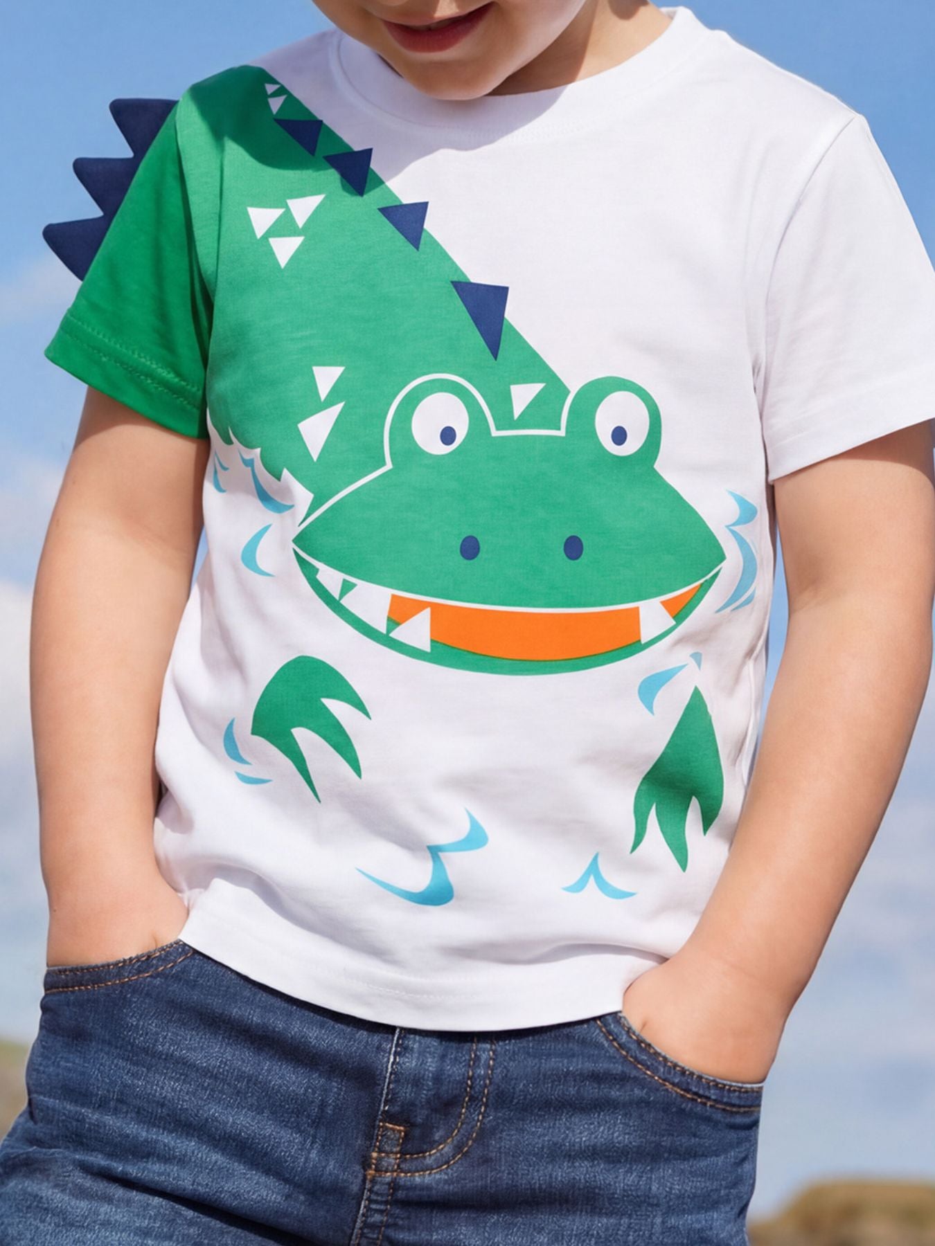 Children's Crocodile Graphic Round Neck T-Shirt