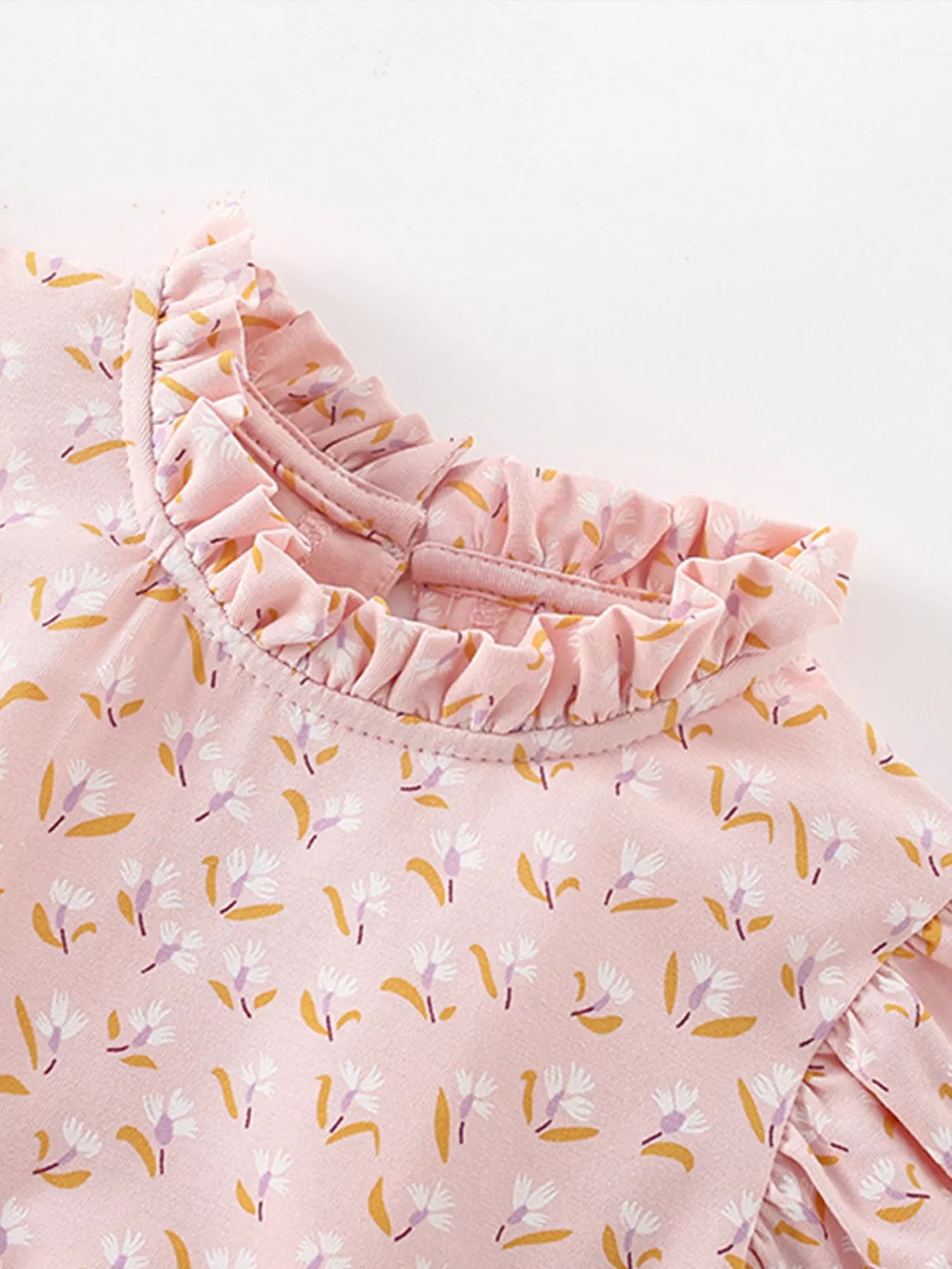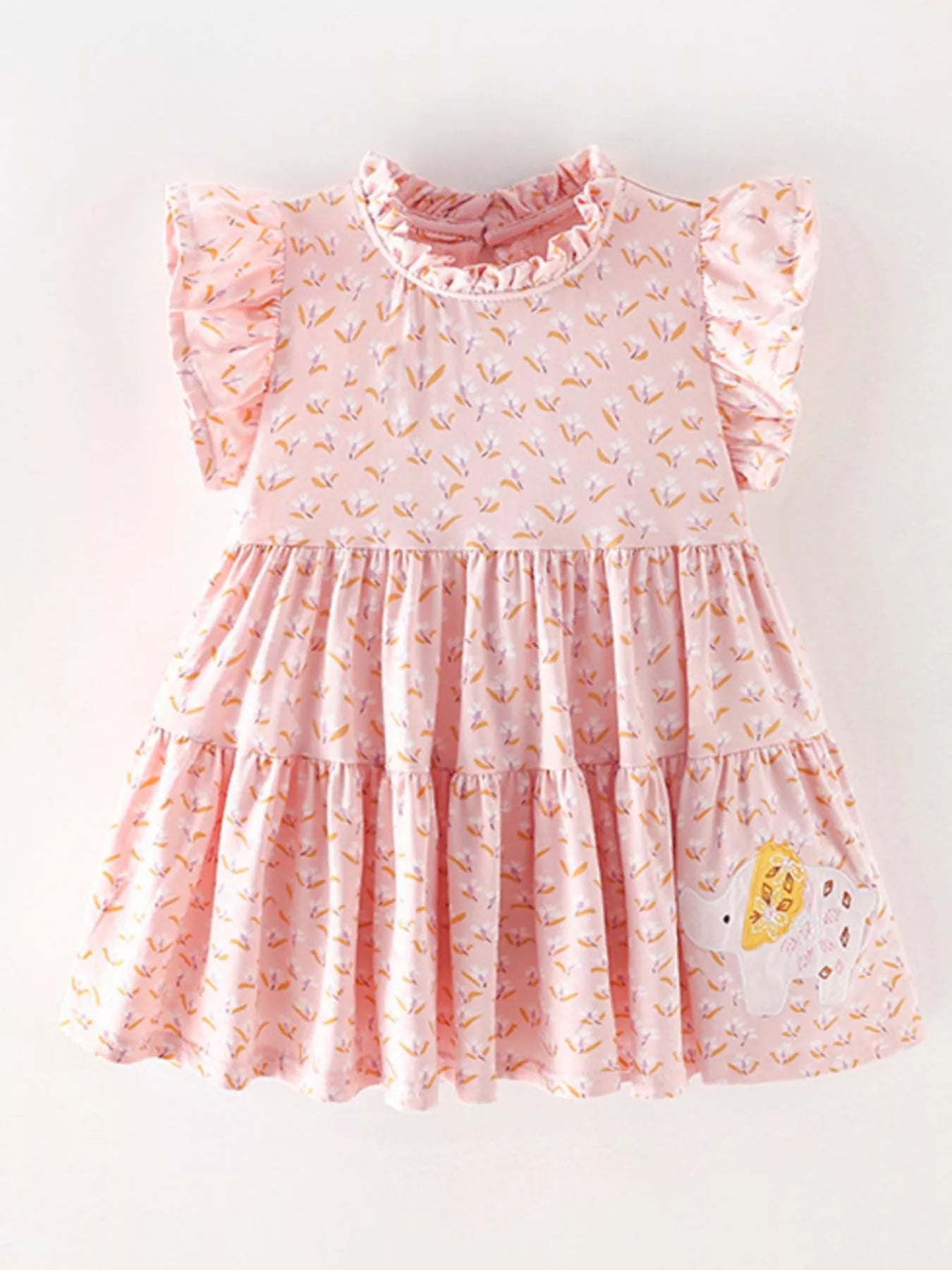 Children's Floral Print Ruffle Sleeve Tiered Dress