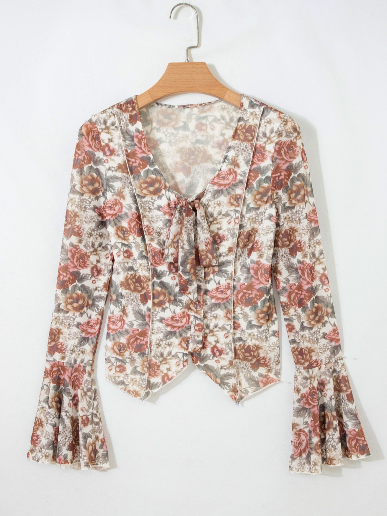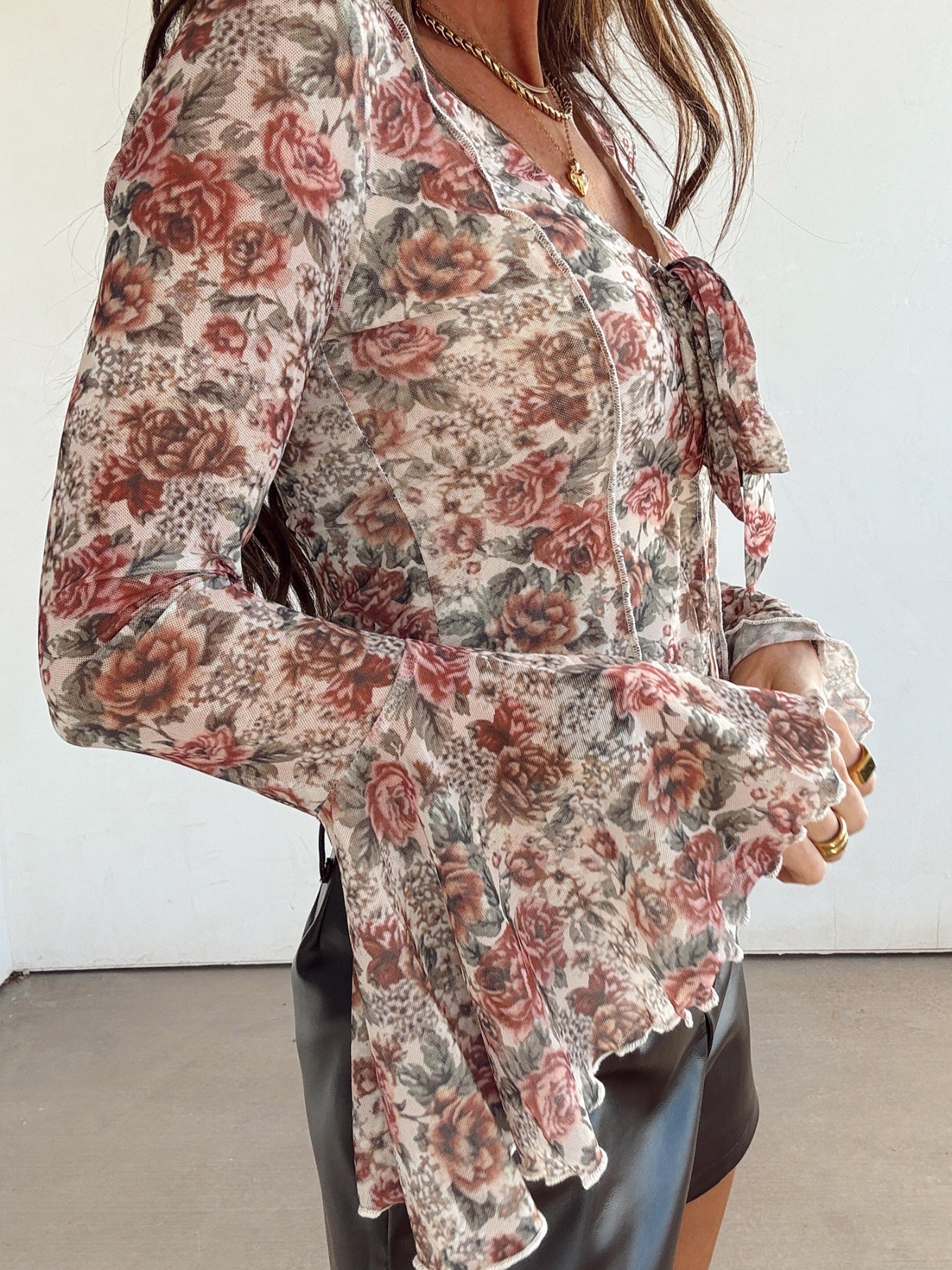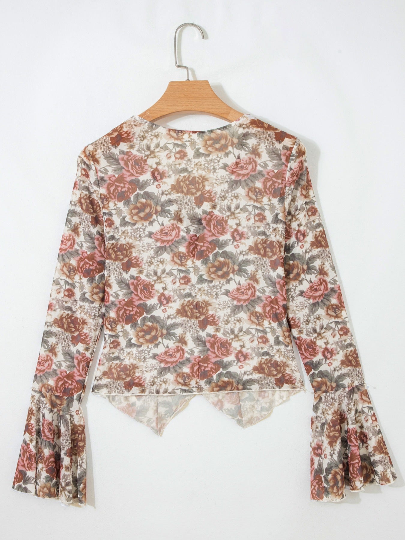 Floral Print Flounce Sleeve Blouse