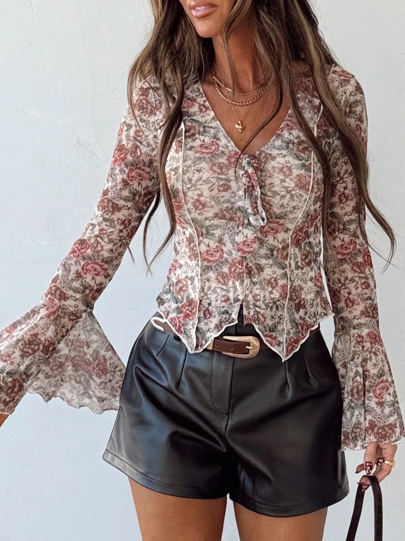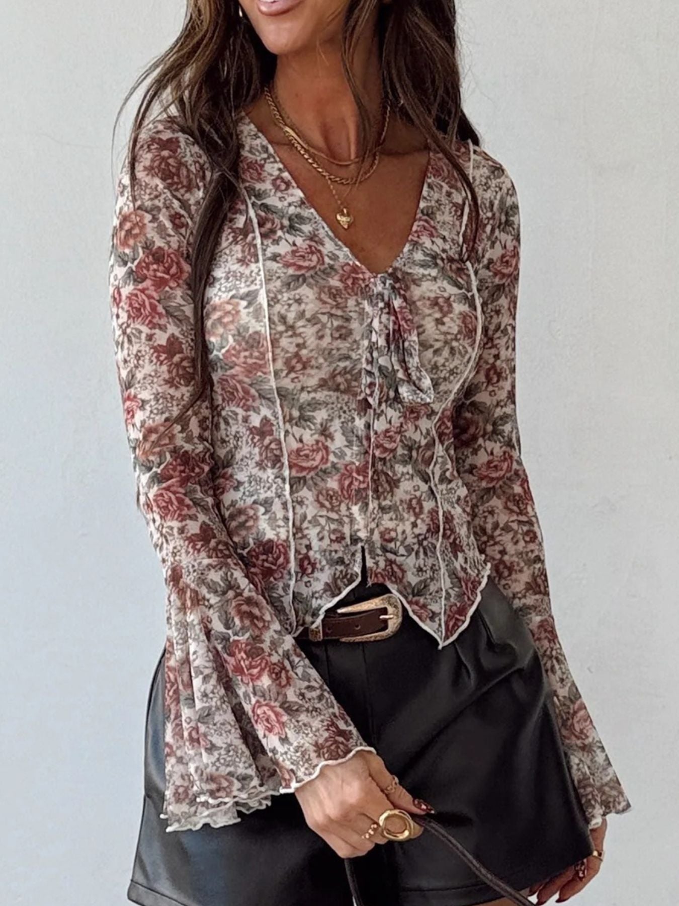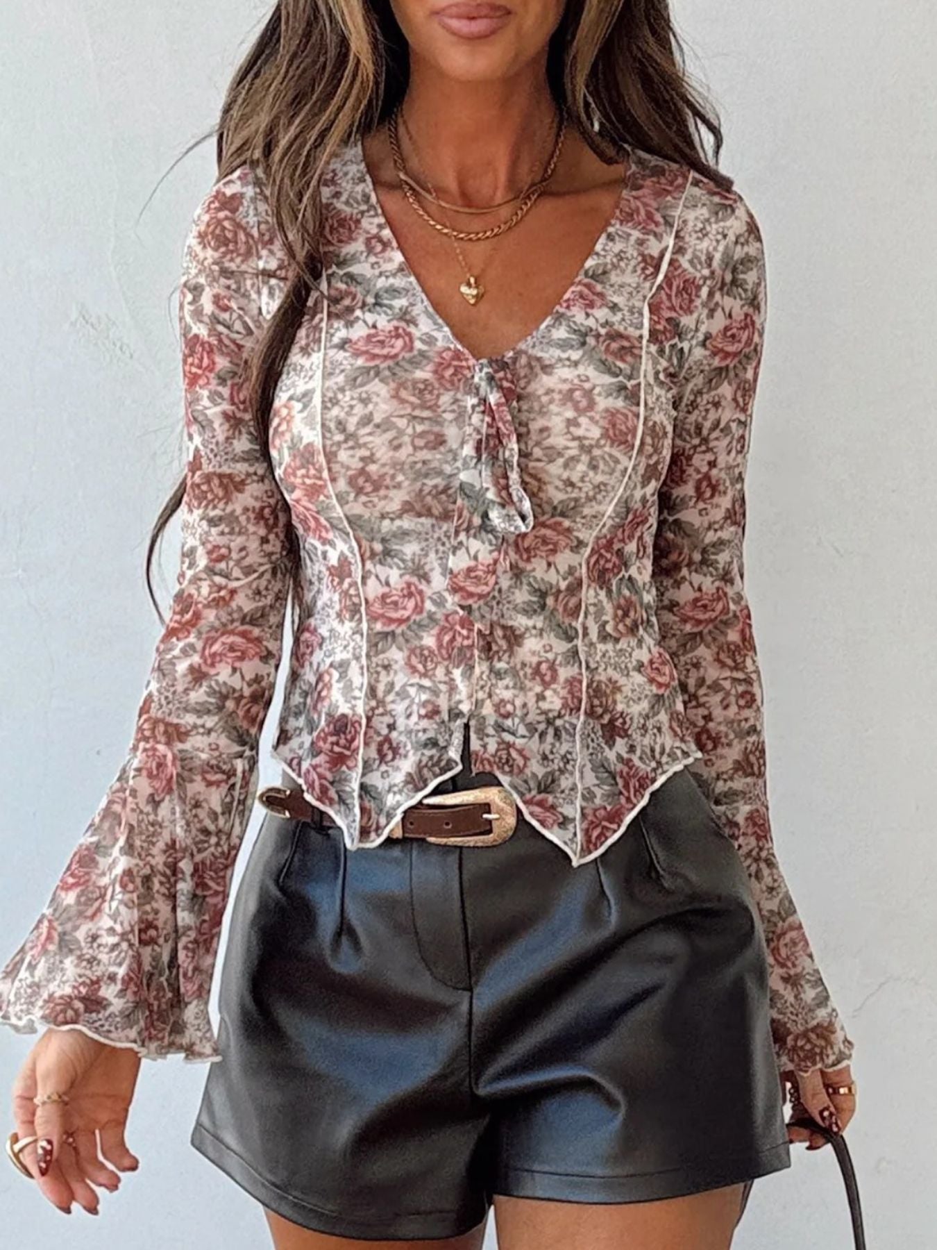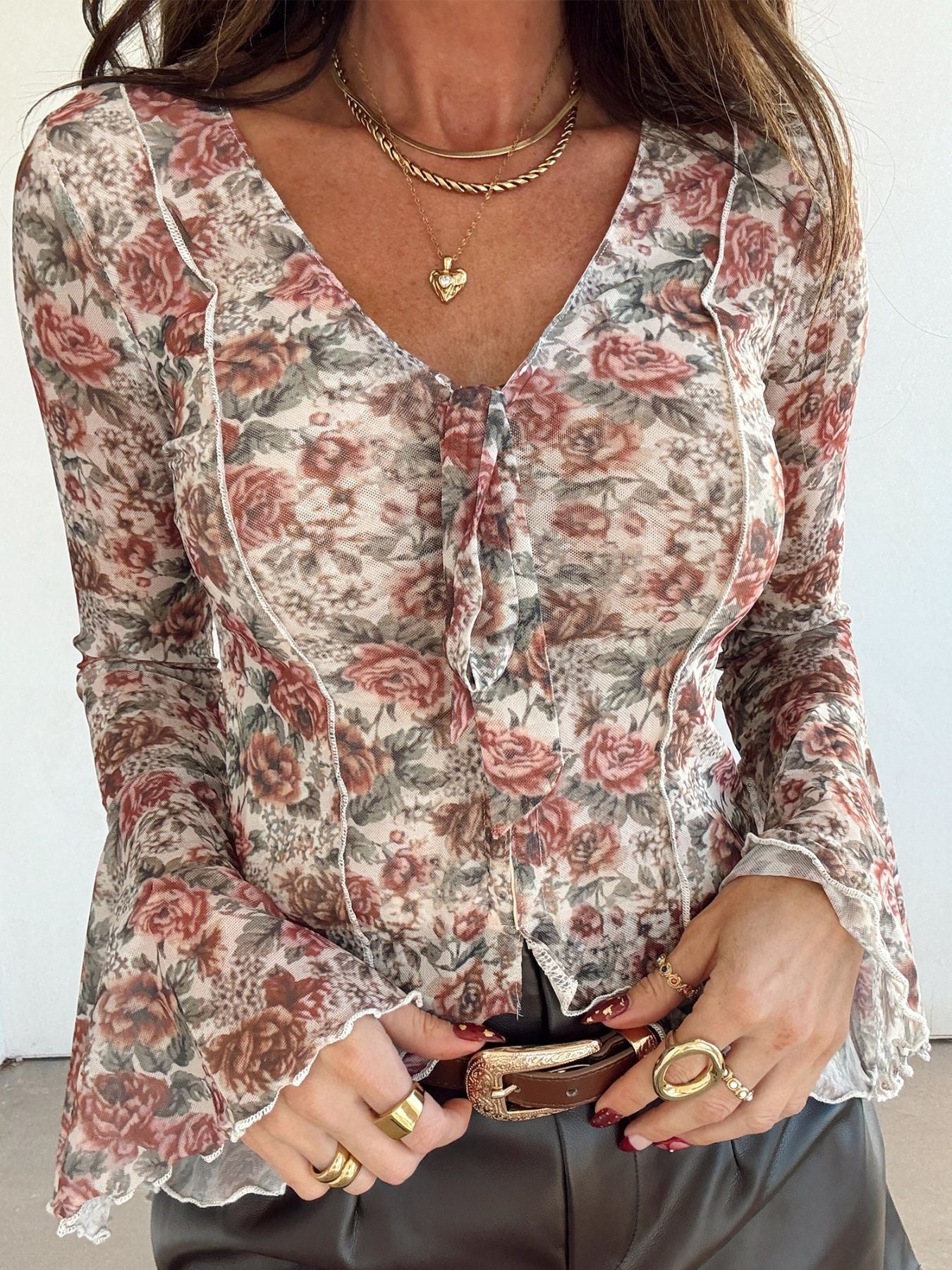Floral Print Flounce Sleeve Blouse