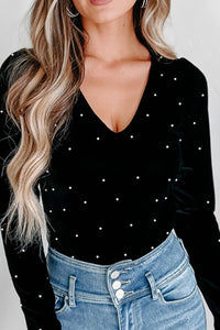 Rhinestone Trim Mock Neck Long Sleeve Bodysuit