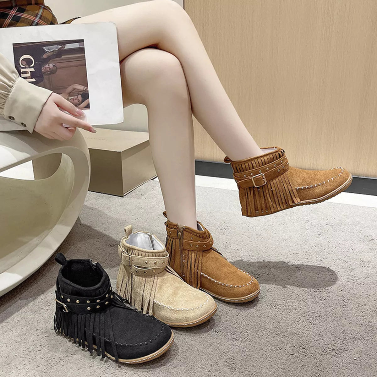Fringe Round Toe Boots
