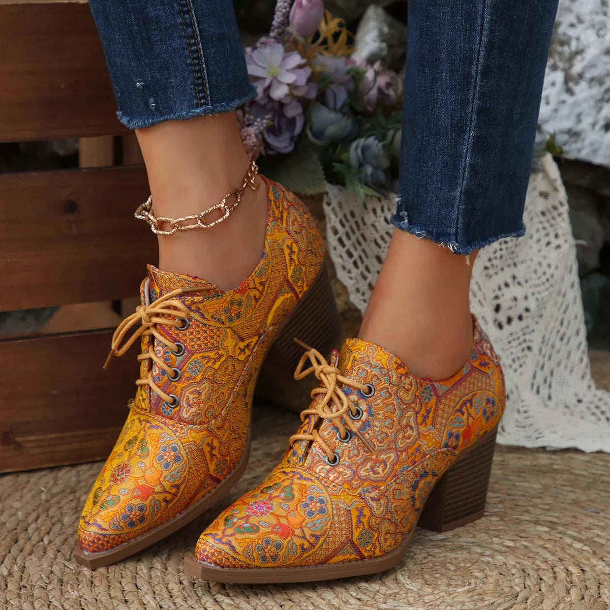 Point Toe Block Heels Ankle Boots