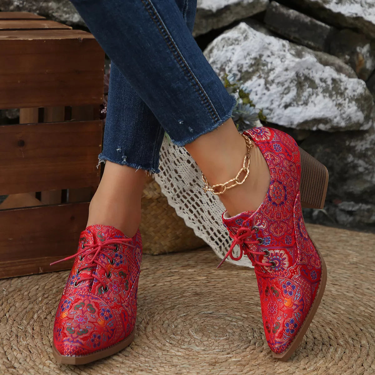 • Heel height:Mid heels