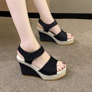 Breathable Mesh Rhinestone Wedge Athletic Sneakers