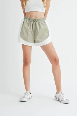 BiBi Woven Color Block Smocked with Ribbon Bra Top