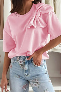 BiBi Rayon Span Knit One Shoulder Top with Leopard Ribbon