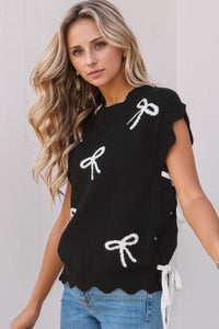 Leopard Bow Decor Split Cuff Contrast Trim Sweater