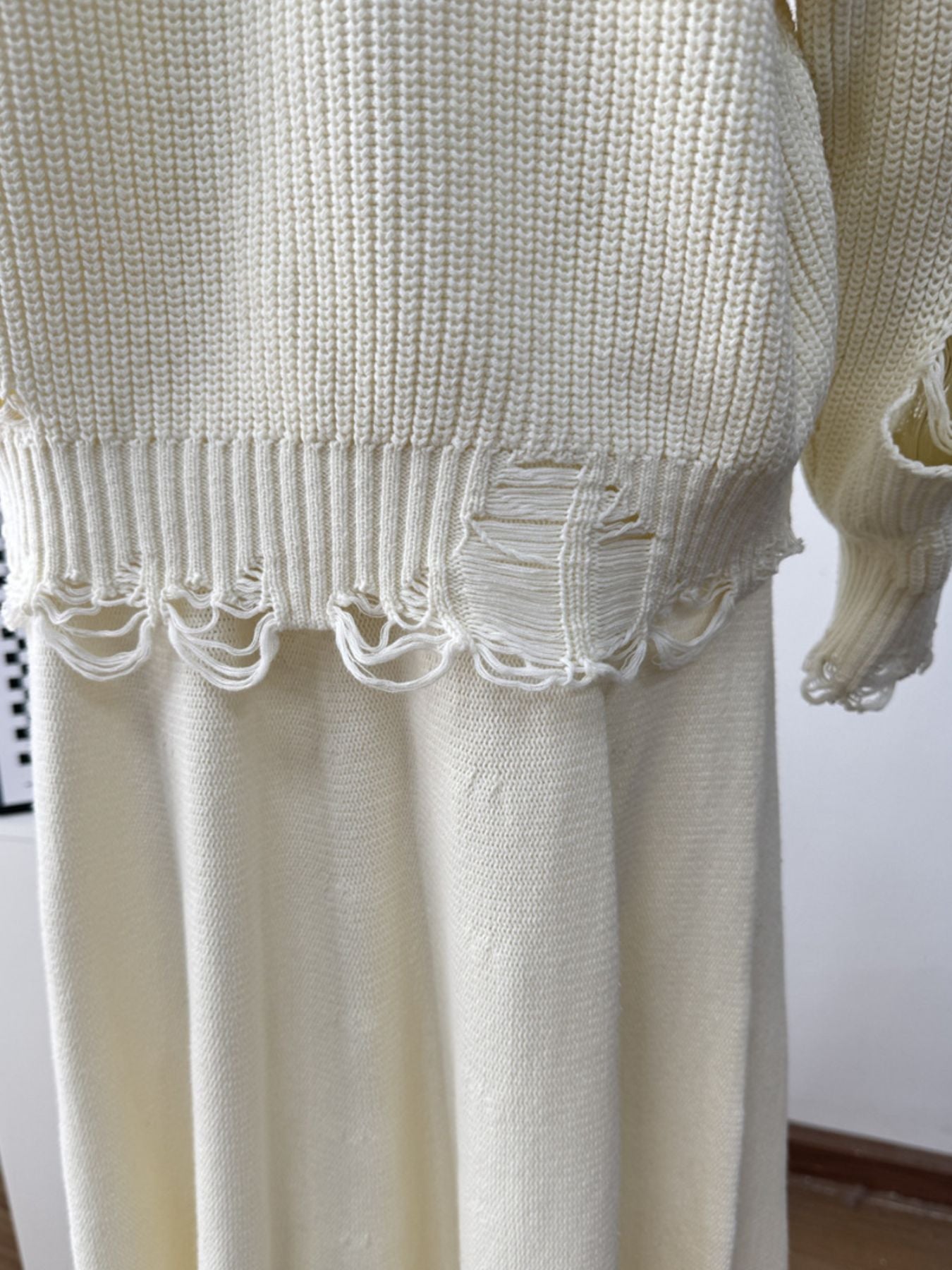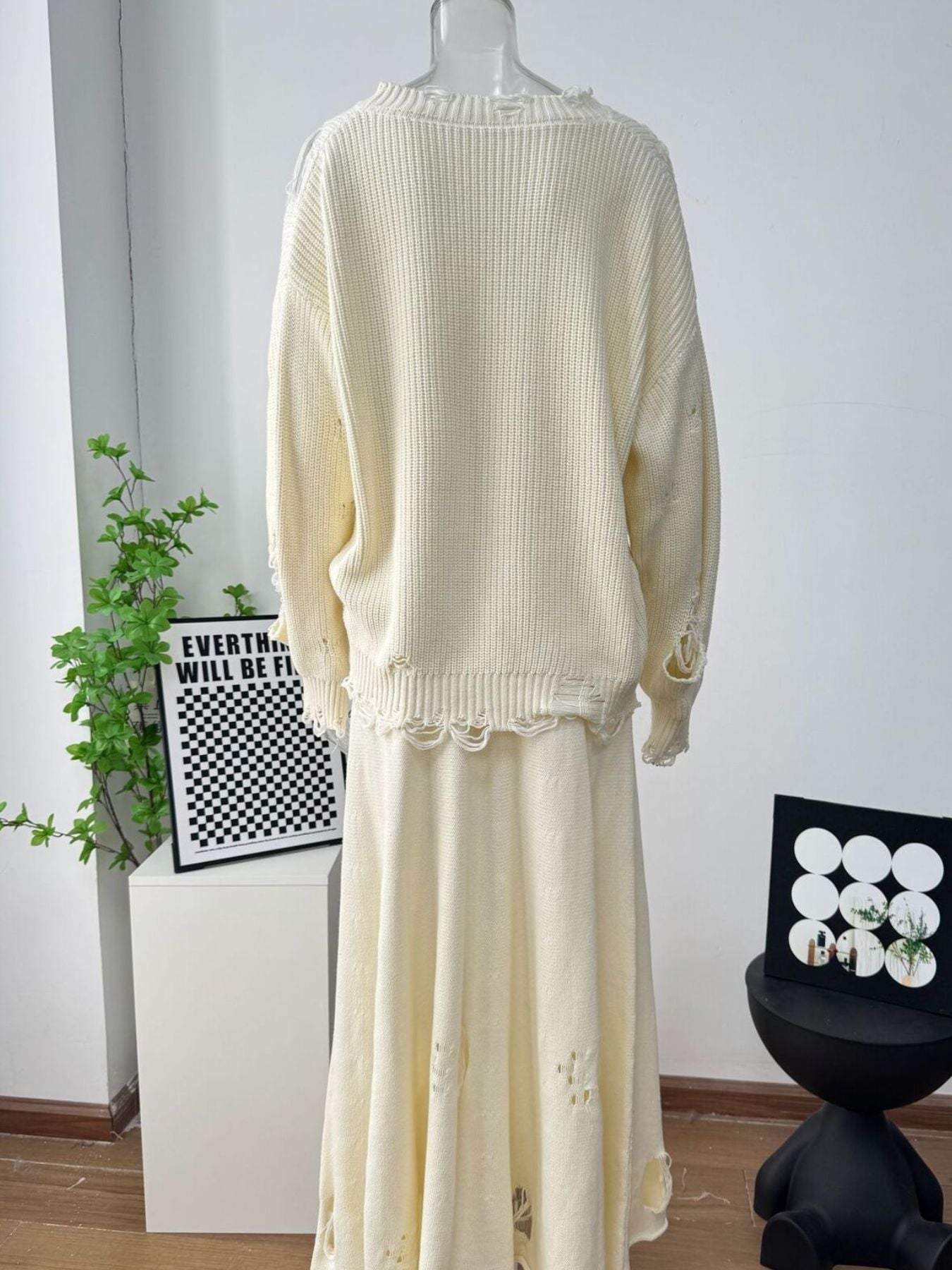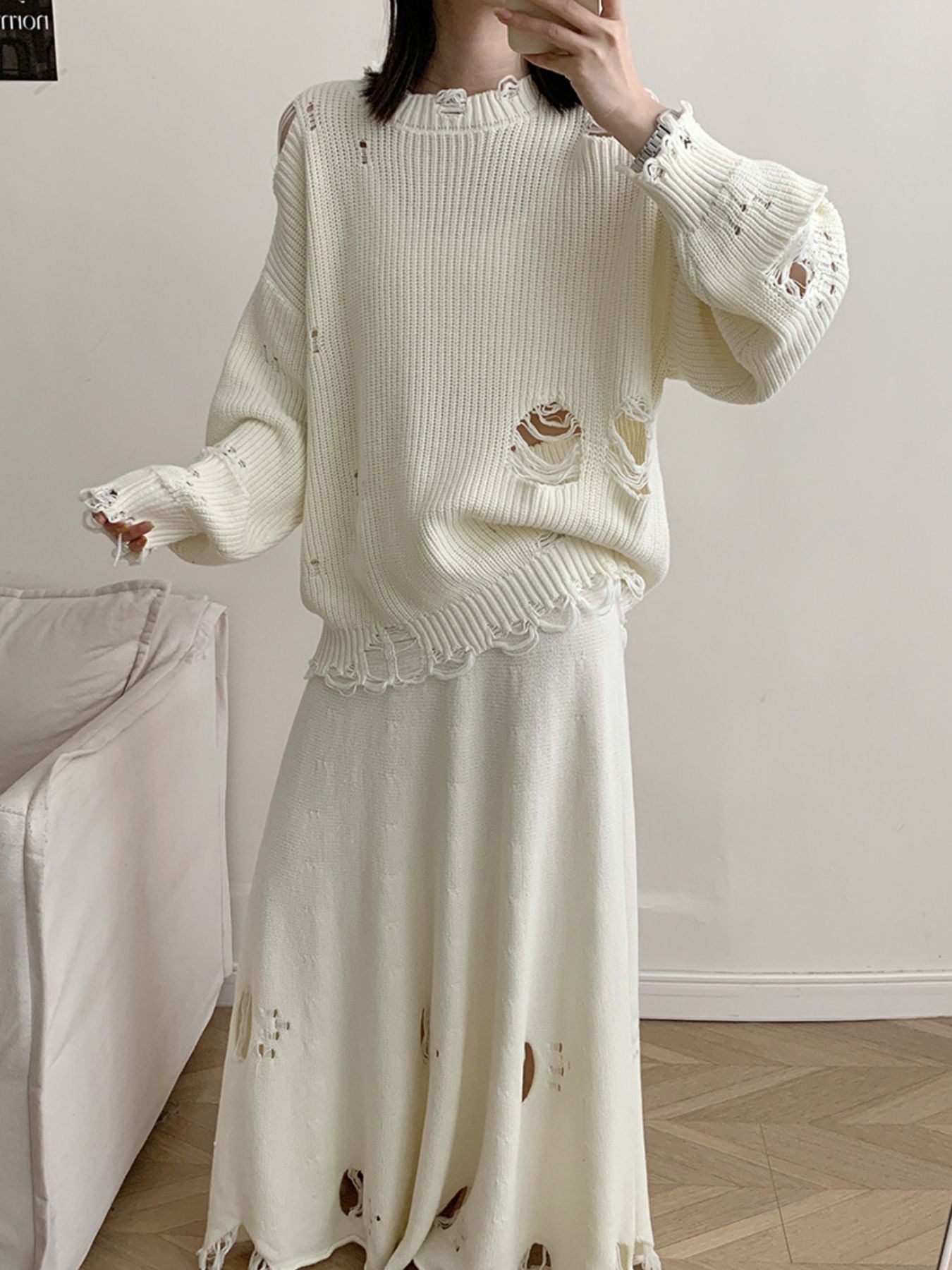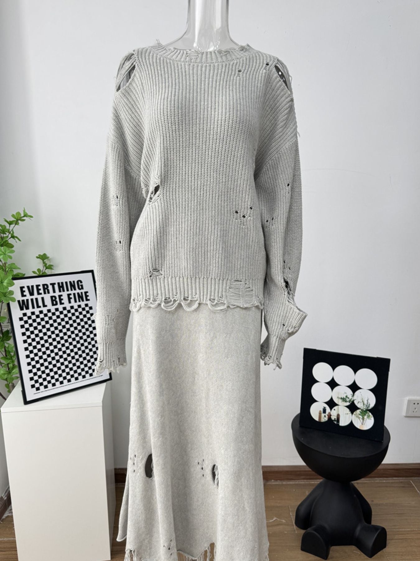 Distressed Long Sleeve Sweater and Skirt Set