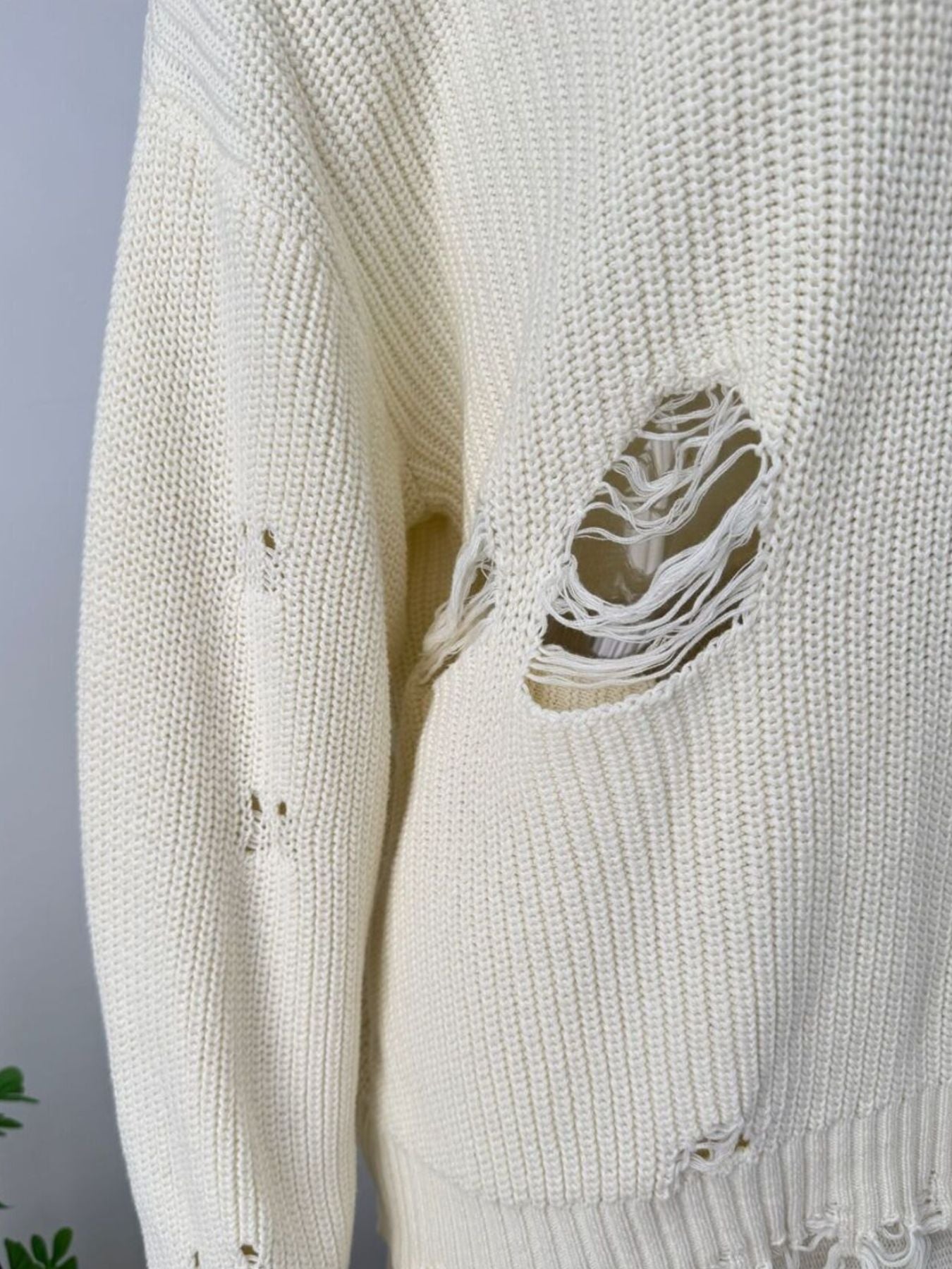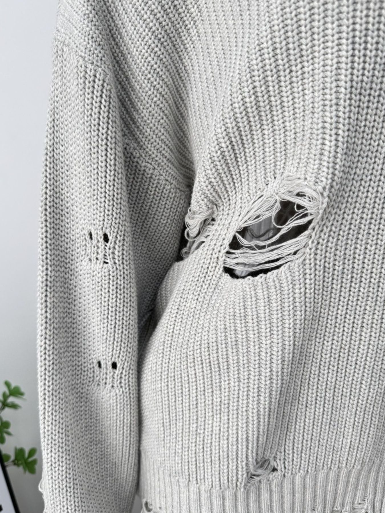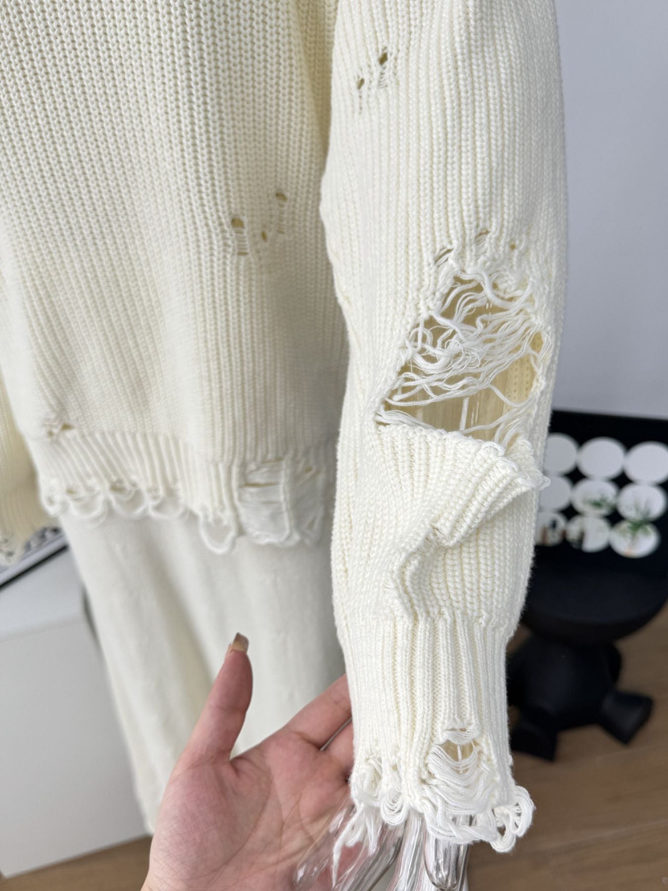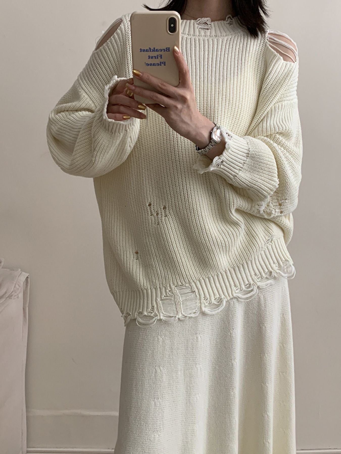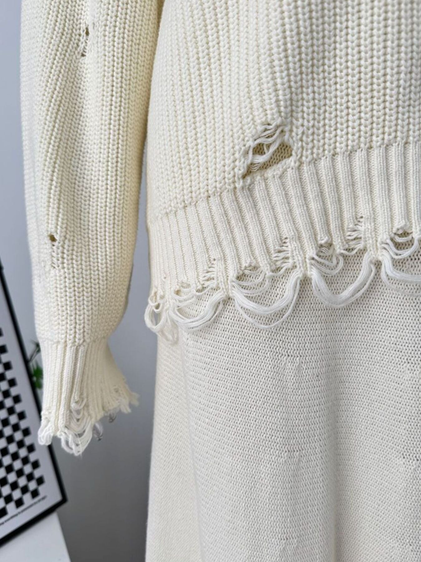 Distressed Long Sleeve Sweater and Skirt Set