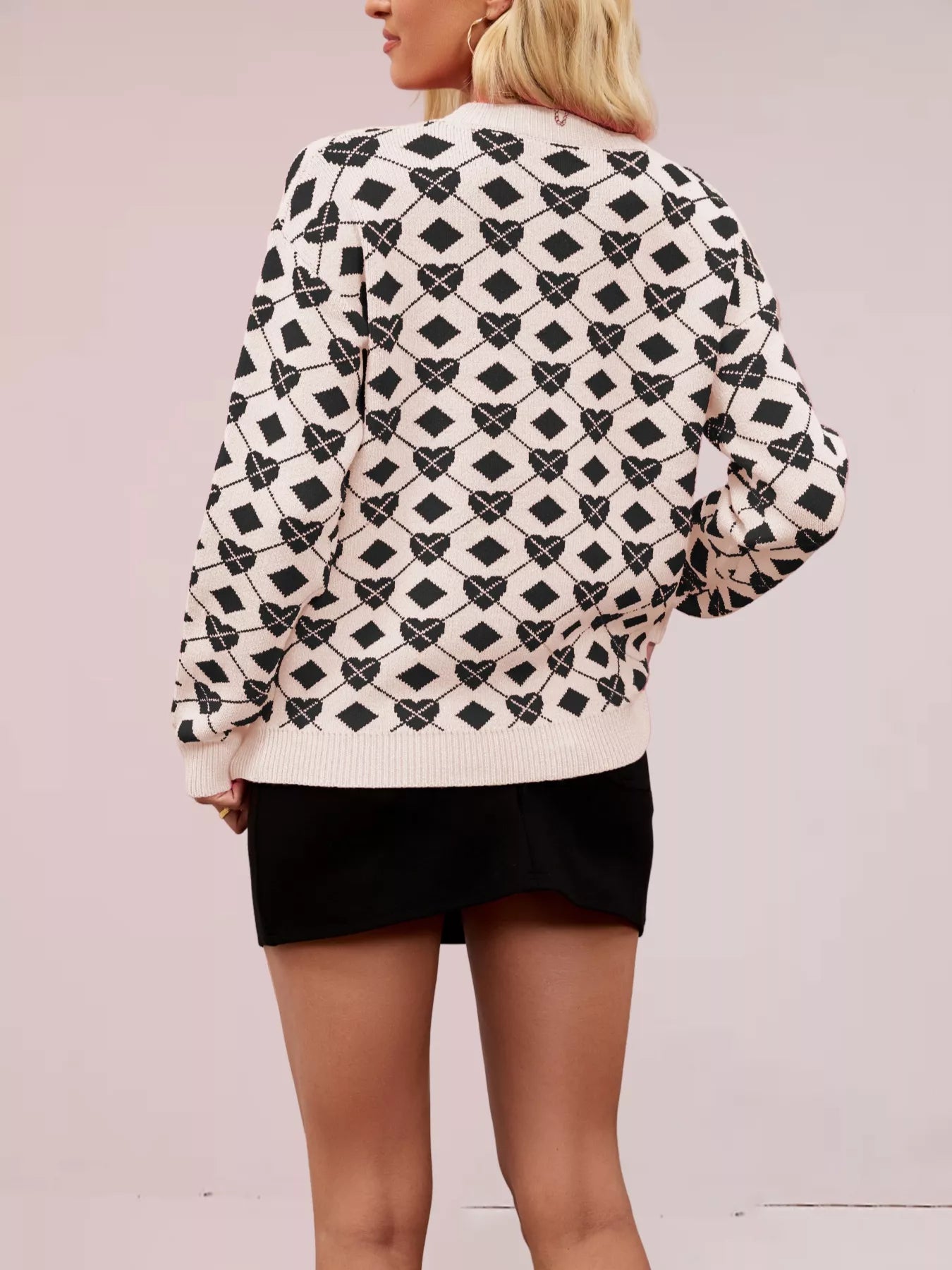 Heart & Diamond Pattern Long Sleeve Sweater