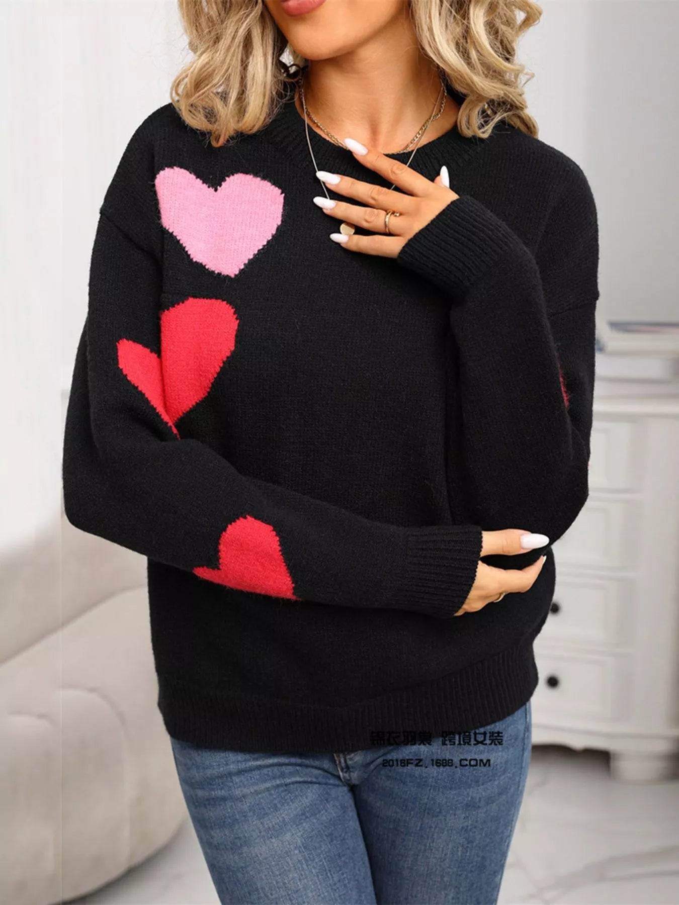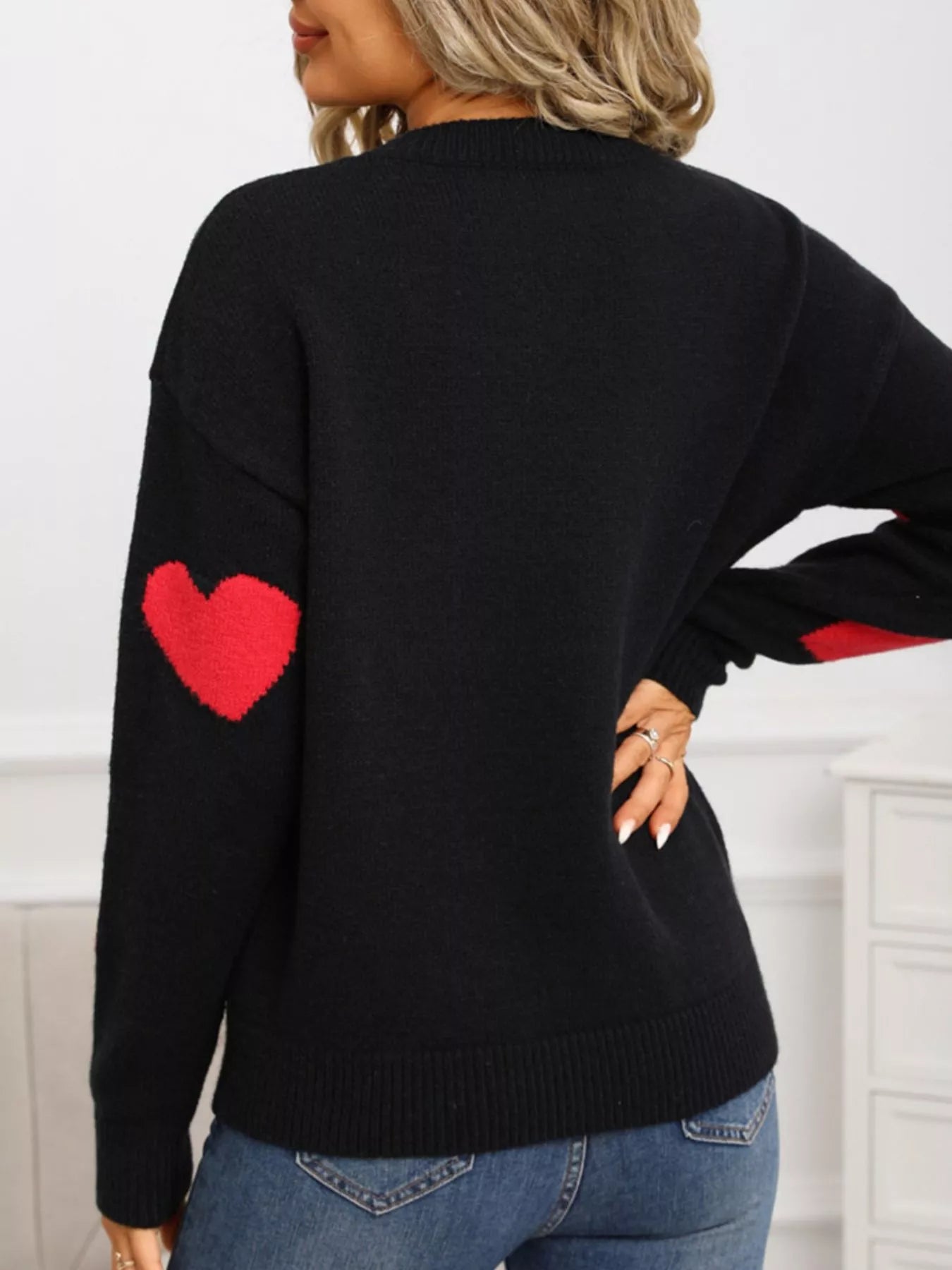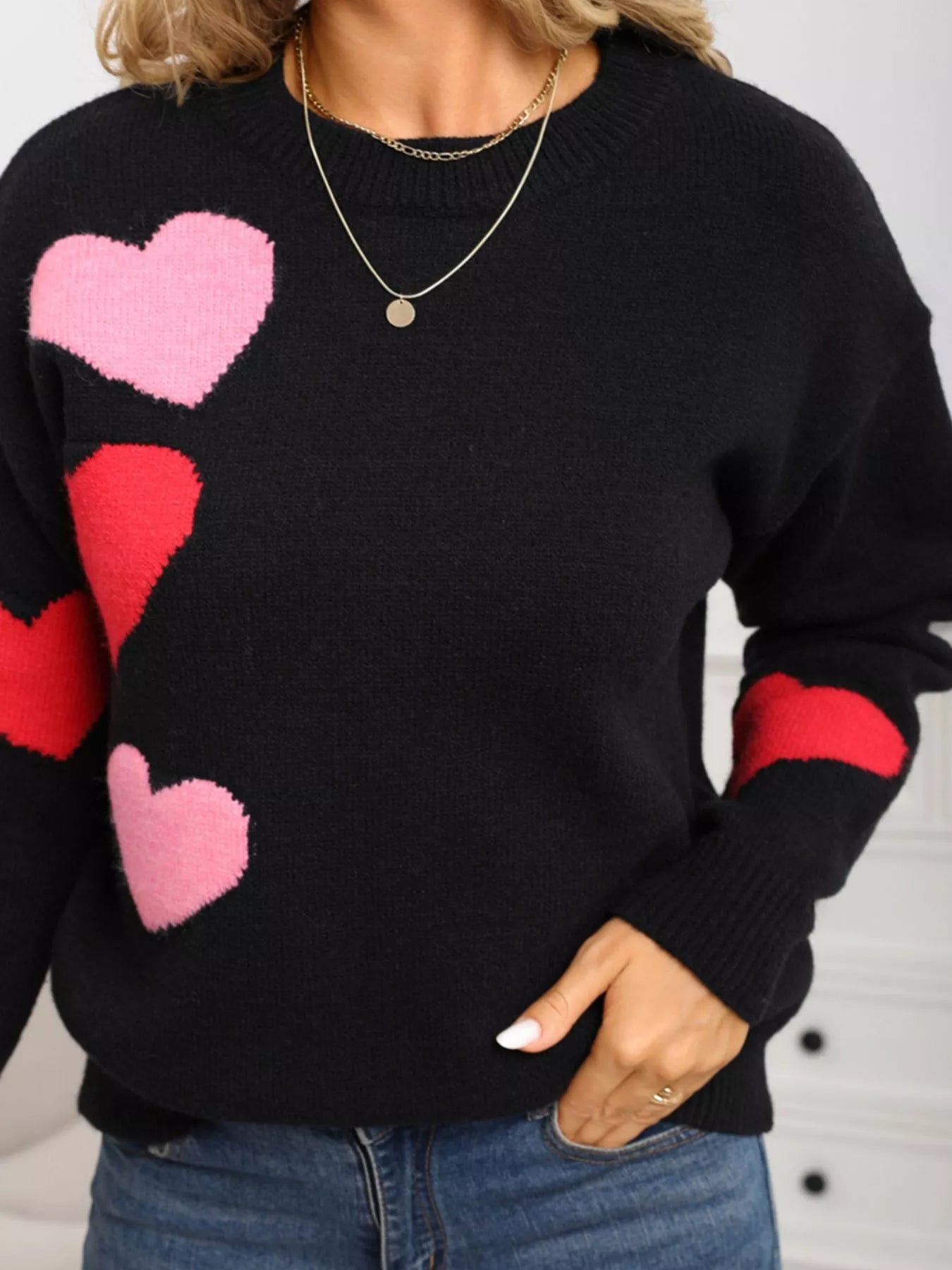 Valentine's Day Heart Pattern Round Neck Sweater