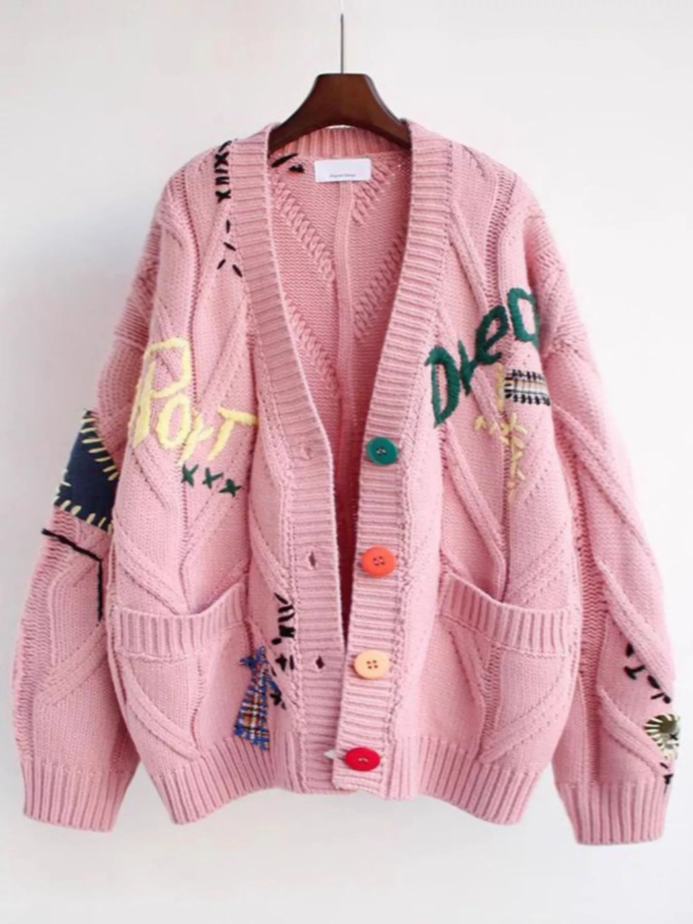 - Features:Cable-Knit,Buttoned