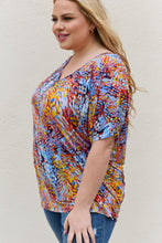 This top offers a relaxed fit that drapes beautifully on any body shape. The dolman sleeves provide a trendy and effortless look, while the flowy design adds a touch of elegance to your ensemble. The standout feature of this top is its stunning multicolored print. With a mix of vibrant hues and intricate patterns, it instantly adds a pop of color to your outfit, making it perfect for both casual and dressy occasions. Whether you're going for a fun day out with friends or a special evening event, this top will definitely make a statement.