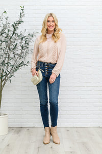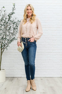 Hello Cottage Core beauty! The Picture This Top is the missing piece your closet needs. It features a subtle mock neck displayed in ruffles creating a beautiful detail, while the bodice of the top features a lace and crochet overlay making this your new favorite going out top.