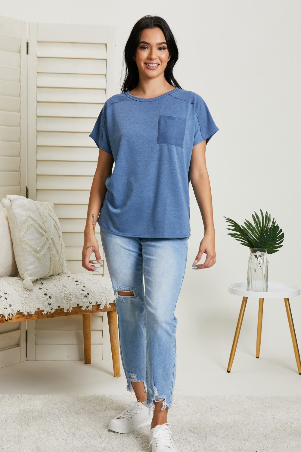 The easy and effortless relaxed silhouette of this pocket tee is a no-brainer for every body type. The basic shape and solid color allow for so many different styling options!