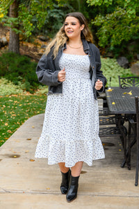Be the cutest at the farmers market in the Sunday Market Dress! This adorable dress has the sweetest details that will make you feel chic and stylish all day long! Featuring a square neckline with a smocked bodice, slight puff sleeves, and an a-line midi skirt with a single tier ruffle hem. How can you not fall in love with a dress this adorable!