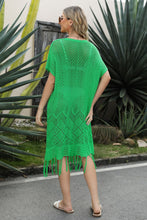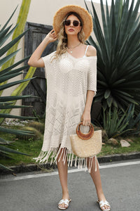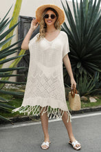 V-Neck Short Sleeve Fringe Hem Knit Dress