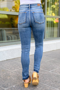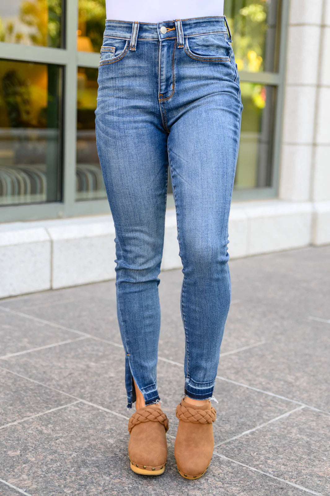 If it weren't for the Winona Released Hem Side Slit Skinnies we don't know how we'd get dressed every morning! These perfect jeans feature a hi rise waist perfected with a five pocket cut and zipper fly. Skinny pant legs feature lived in fading and a released hem detail that slits up the side. It's impossible to be disappointed by these staple skinnies!